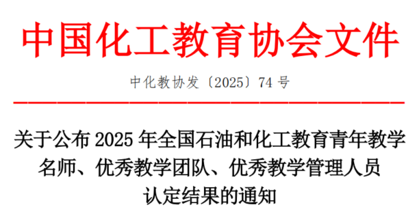 中国化工教育协会是国家一级石油和化工行业组织,此次评选活动旨在深入贯彻党的二十大和全国教育大会精神,全面落实《教育强国建设规划纲要(2024—2035年)》要求,旨在表彰在强化教育服务石油和化工产业发展能力、提升教育教学与人才培养质量方面做出突出贡献的集体与个人。评选过程严格遵循相关认定规范,经过单位推荐、网上申报、初审认定、终审认定,最终确定名单。